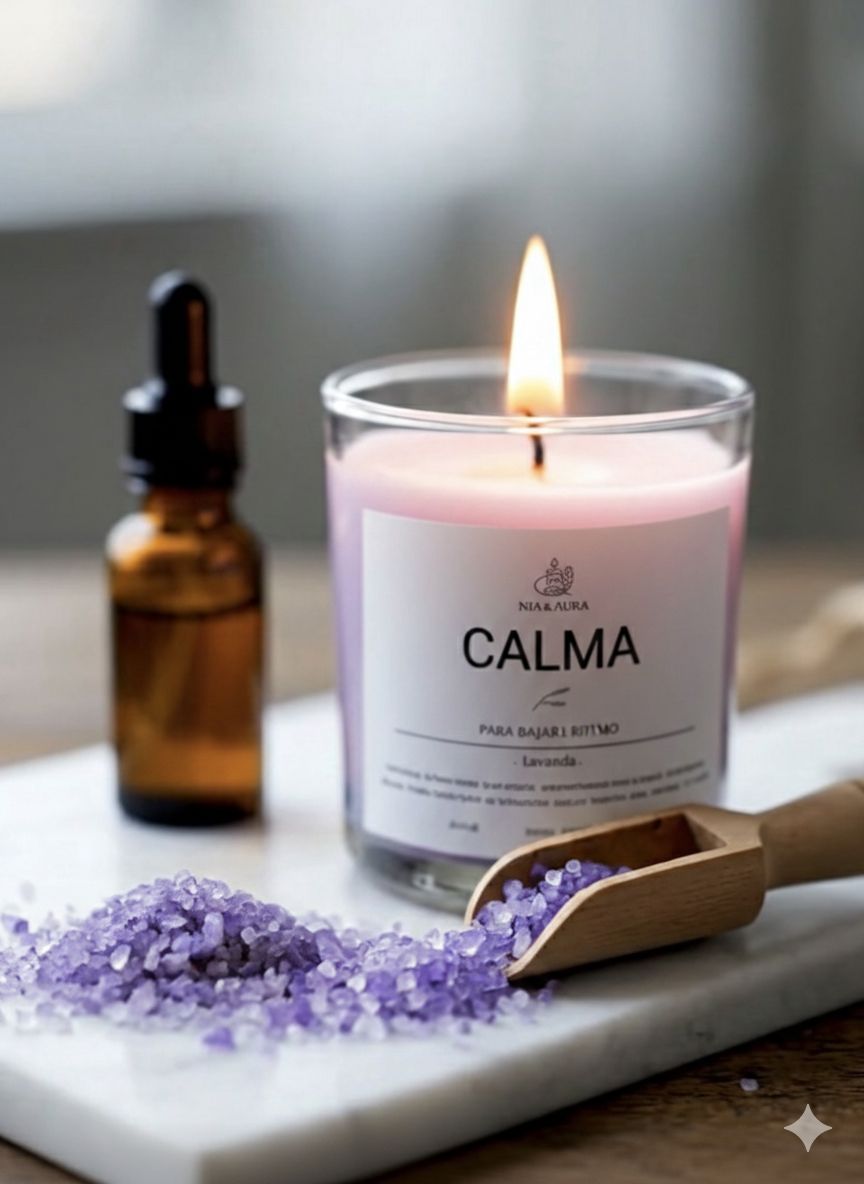 CALMA es una vela aromática pensada para bajar el ritmo y crear un ambiente sereno.